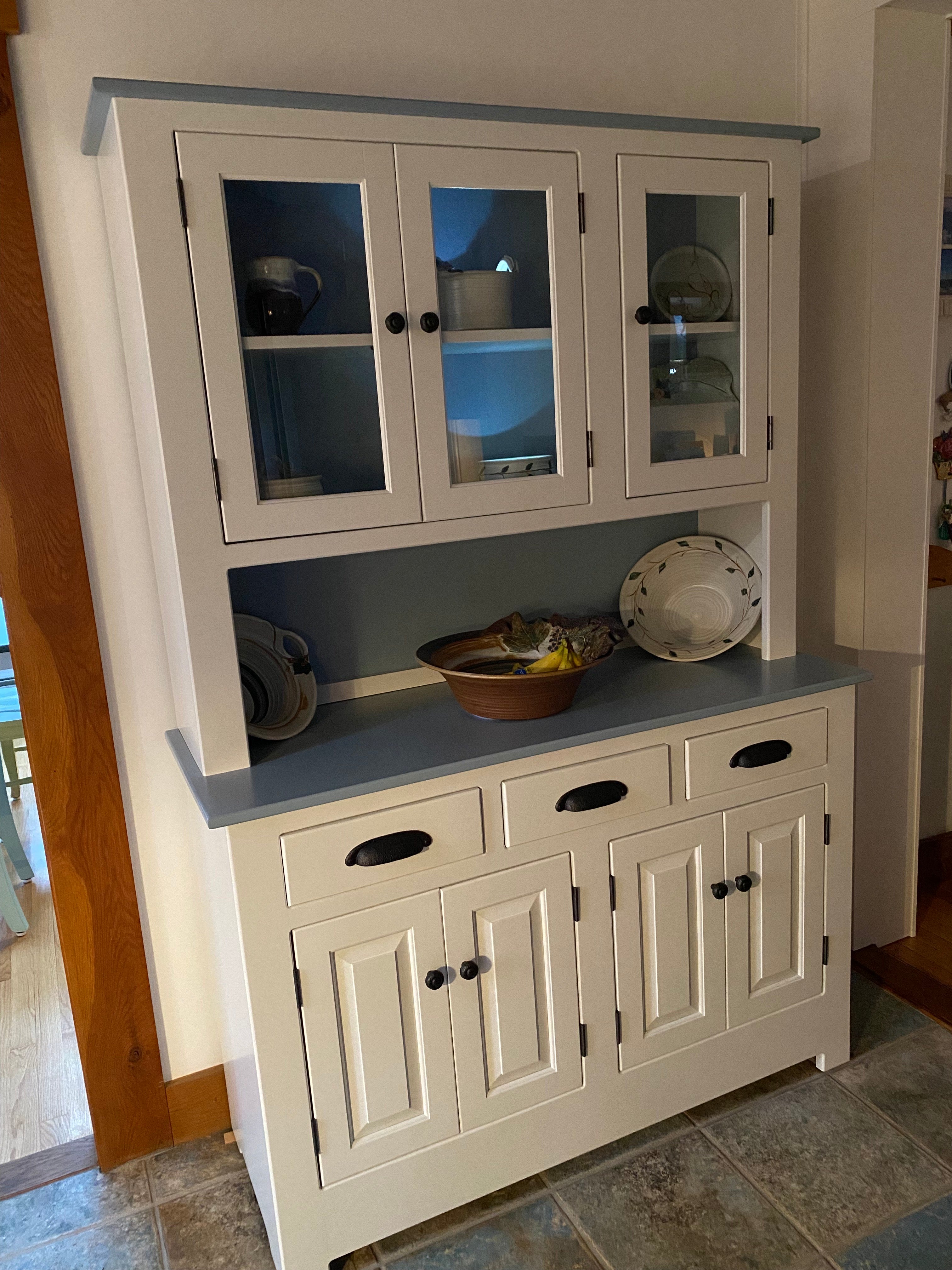 COUNTRY LANE PINE FURNITURE COLLECTION Size: 38"W x 75"H x 13"D Height is the total with Cabinet and Hutch Combined Features Built from Solid Eastern White Pine Wood Amish...