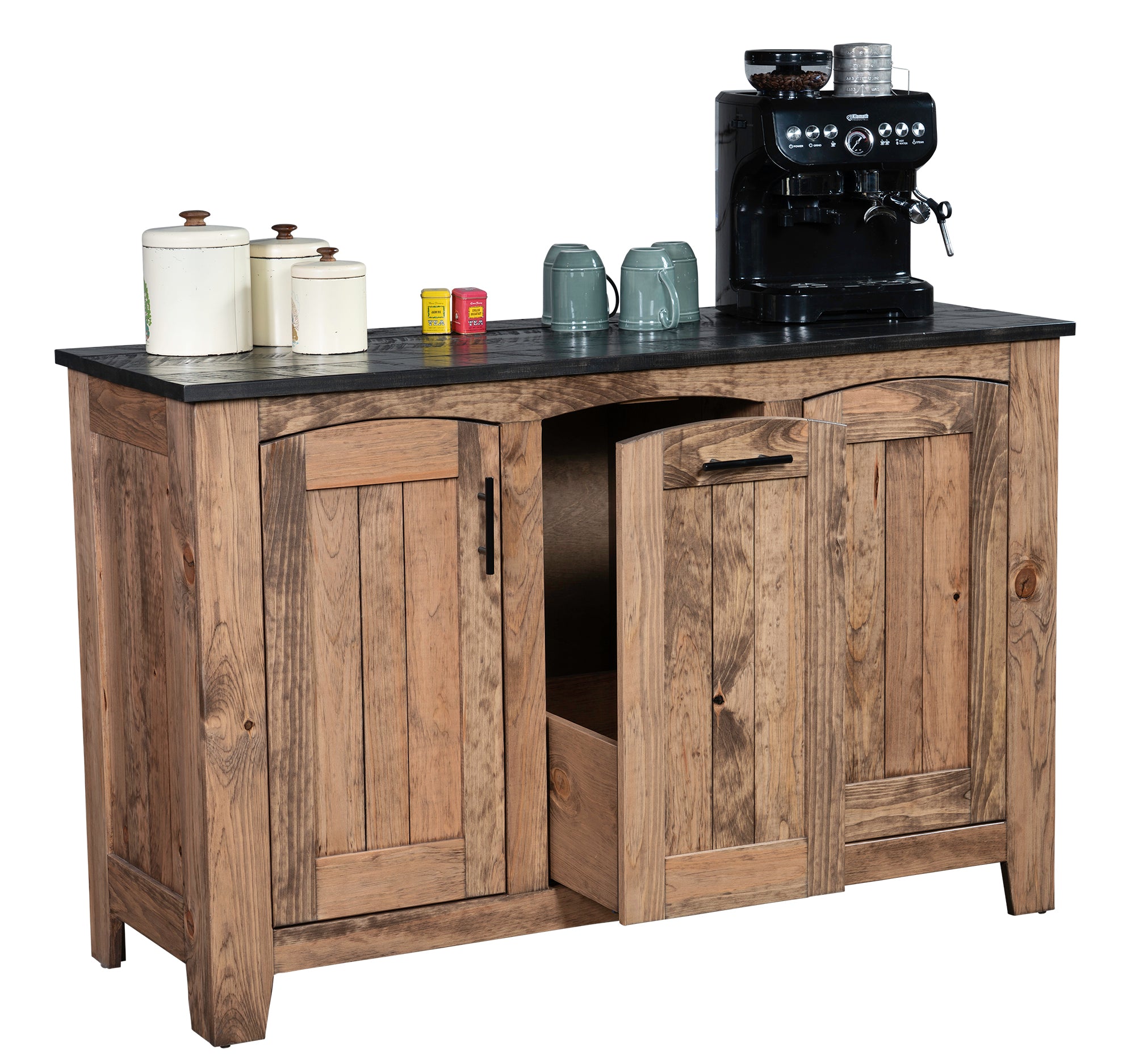 Handcrafted from the reclaimed wood of century old barns, this unique coffee cabinet is perfect for anyone that loves their morning coffee routine. The reclaimed barnwood showcases original saw marks...